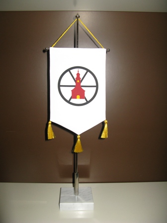Tilaa lahjaksi, muistoesineeksi tai juhlapöydän arvokkaaksi koristeeksi sukuseuran tunnus pöytästandaari.