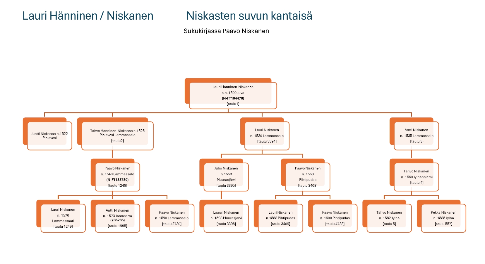 Sukutietokannassa on enää yksi sukuhaara. Katso vanhimpien Niskasten kaaviot tästä:
